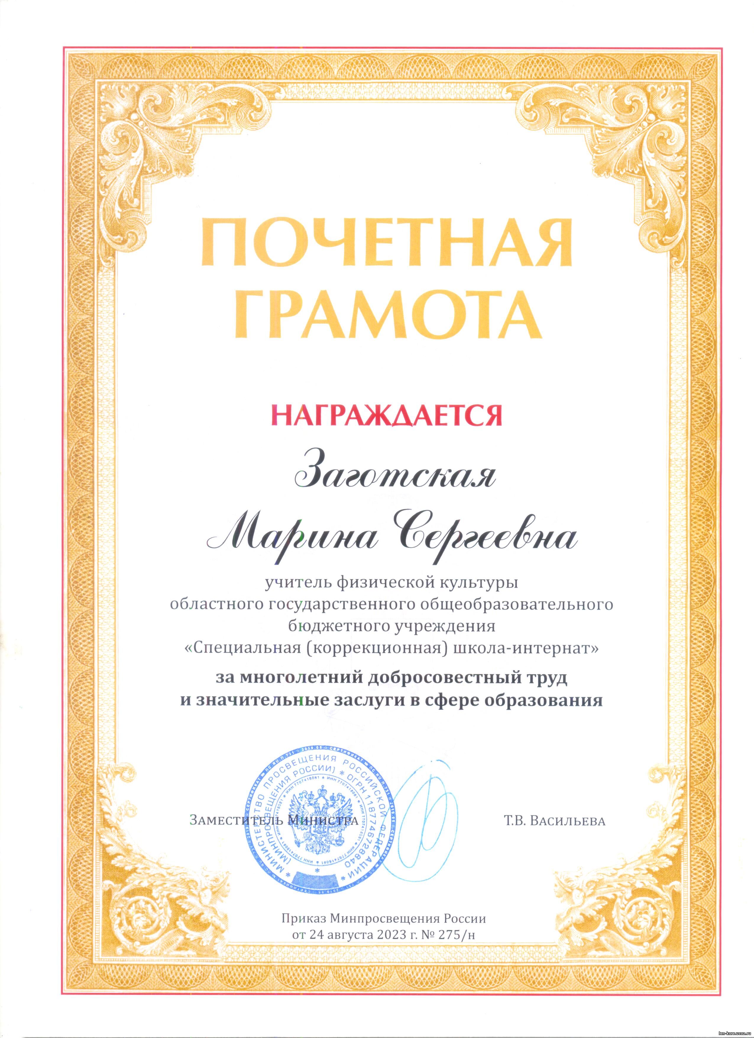 Квалификационная категория: первая квалификационная категория по должности «учитель» (Приказ комитета образования Еврейской автономной области от 01.03.2021 № 98 «Об аттестации педагогических работников»)