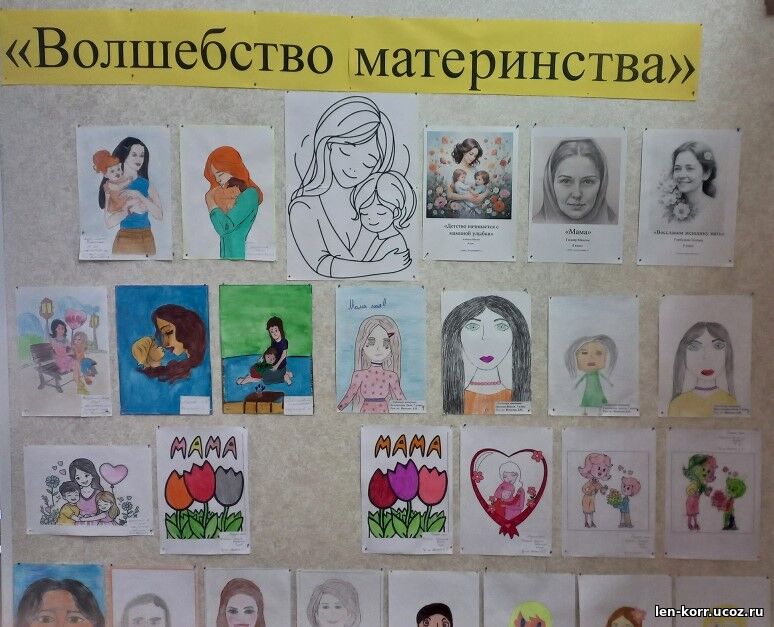 В преддверии тёплого и трогательного праздника Дня матери, в период с 17 по 25 ноября, в школе прошел творческий конкурс раскрасок и рисунков «Волшебство материнства». Дети с большим удовольствием рисовали портреты своих мам. Ведь мама для каждого ребенка самая лучшая, добрая и красивая. Юные художники с трепетным и волнительным чувством подошли к работе и поэтому их рисунки получились яркими, красочными, разнообразными! Ребята старались нарисовать свою любимую мамочку такой, какая она у них есть: весёлой,